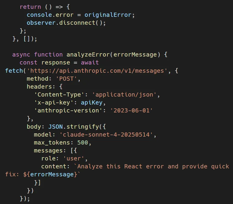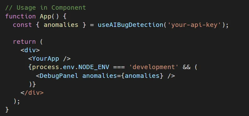 This React hook uses AI debugging tools to monitor your application: