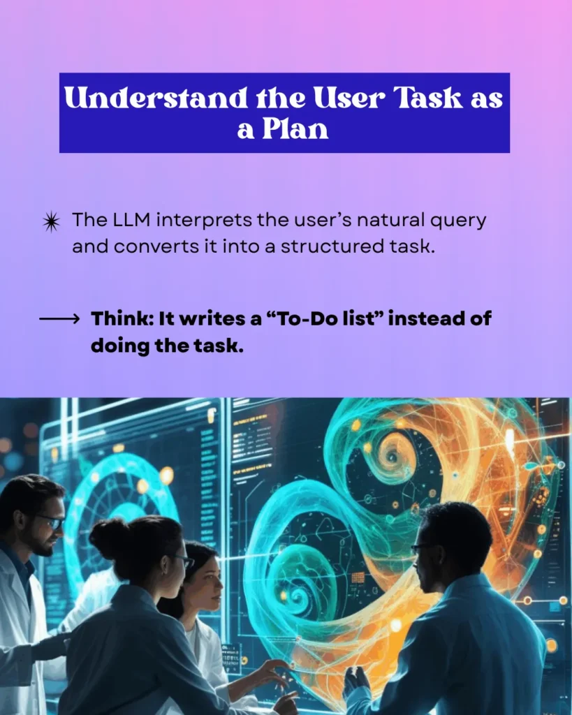 LLMs are great at deciphering natural language inquiries and formulating the request into a series of lists of to-dos instead of executing the request immediately. This is the power of thinking in terms of a plan, providing clear, sequential steps for a better understanding and management of a task.