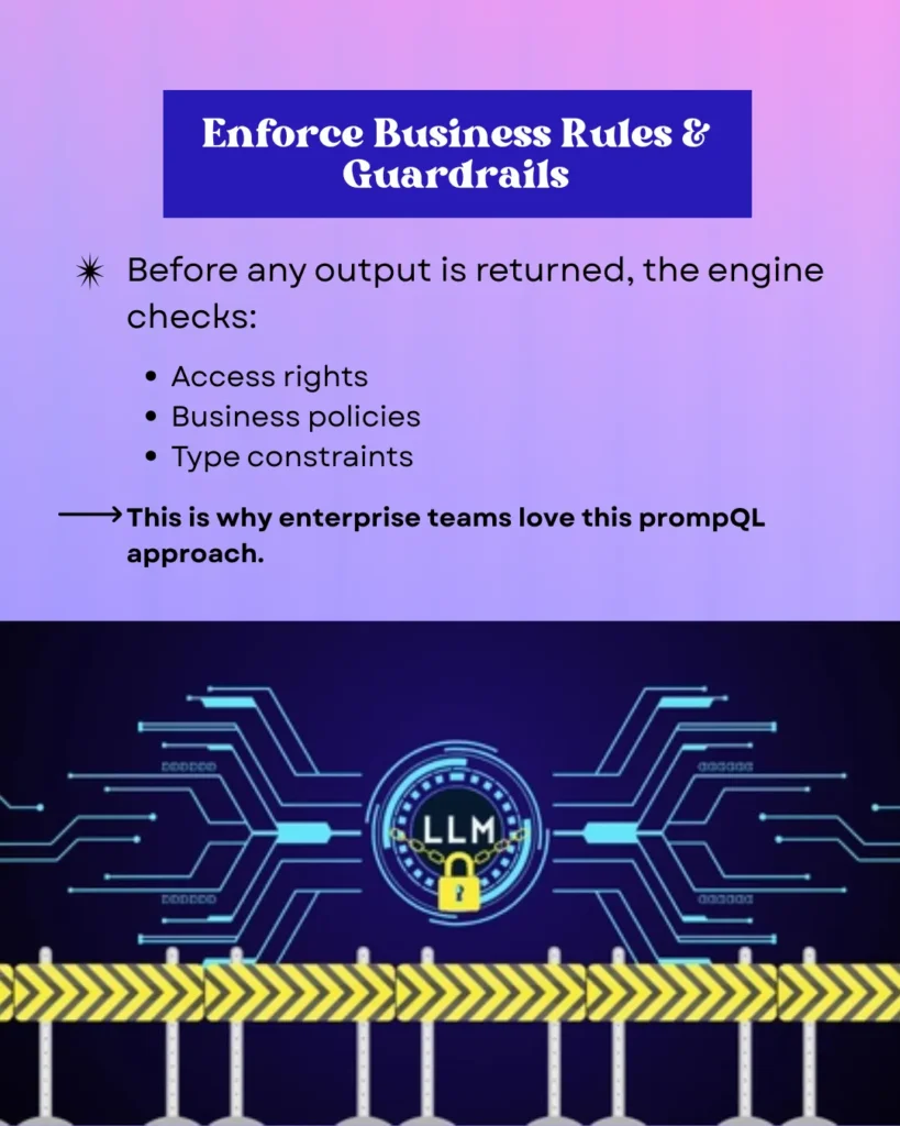 Semantic graph engines will validate access rights, business policies, and type constraints before providing any output. This promptQL-style approach provides enterprise teams with solid security and compliance capabilities, ensuring that AI outputs are safe and align with business rules.