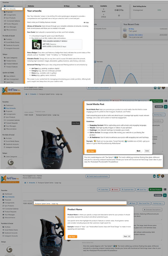 • Onboarding and get started guides to let artists & galleries quickly setup their profiles