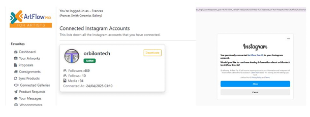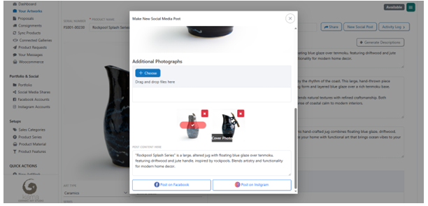 • Social sharing of artworks on Facebook & Instagram pages, and getting insights.
