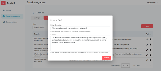 A bot can have what we call a knowledge database of FAQs to help assist in structuring better responses. These FAQs are passed to the OpenAI model so incase the customer asks a similar question, AI has a reference in its reply.